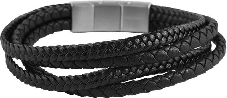 Neljäremminen rannekoru on valmistettu nahasta ja korkealaatuisesta ruostumattomasta teräksestä. Musta nahka ja kirkas teräs sopivat hyvin yhteen.