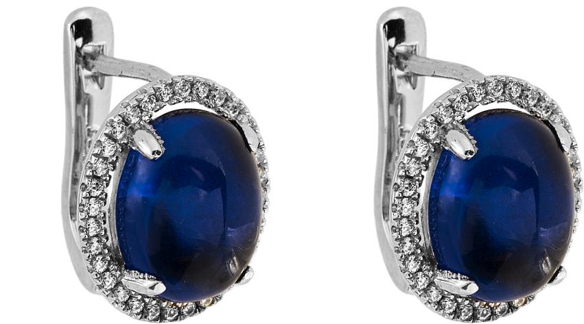 Diana korvakorut Safiirin sinisellä kivellä. jota ympäröivät zirkonit. Koko:14x12mm Tappi/sarana kiinnitys