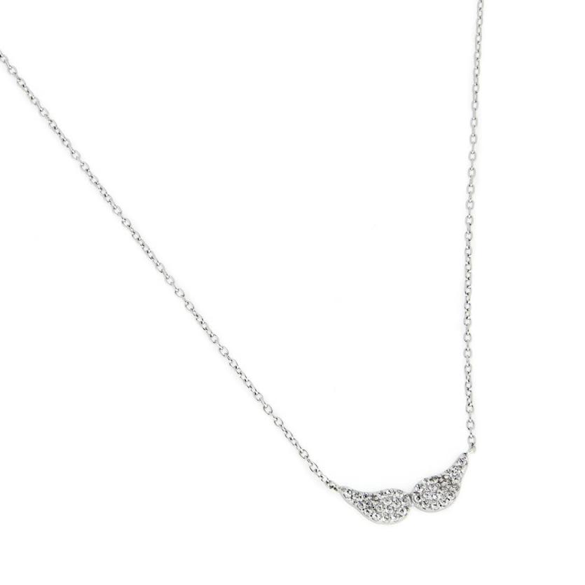 Sterling-hopeasta valmistettu kaulakoru, jota koristavat kauniit kirkkailla zirkoneilla koristellut enkelin siivet.