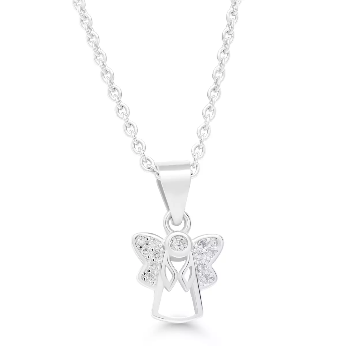 Enkelikaulakoru zirkoneilla. Ketju lisälenkillinen, 36 cm + 4 cm. Sopii hienosti vaikka kastelahjaksi.