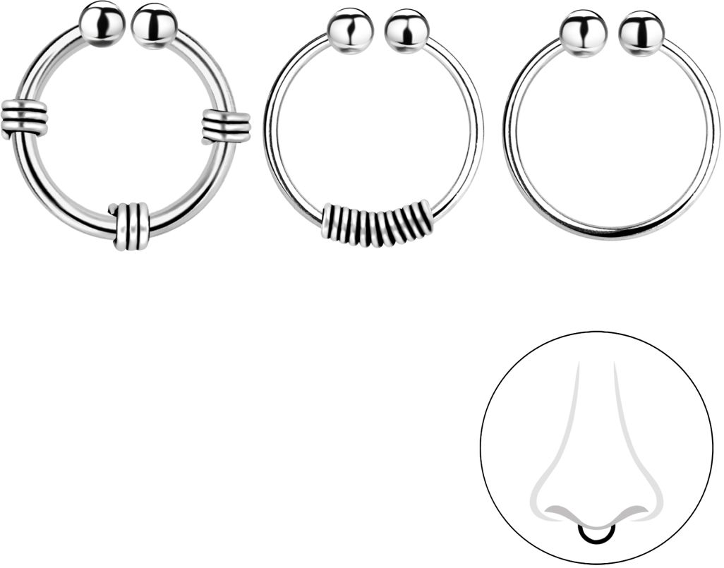 Feikki Lävistyskoru Setti Materiaali 925 hopea Kolme erilaista rengasta Halkaisija n. 10mm Renkaita voi käyttää vaikka nenä- tai huulikoruna