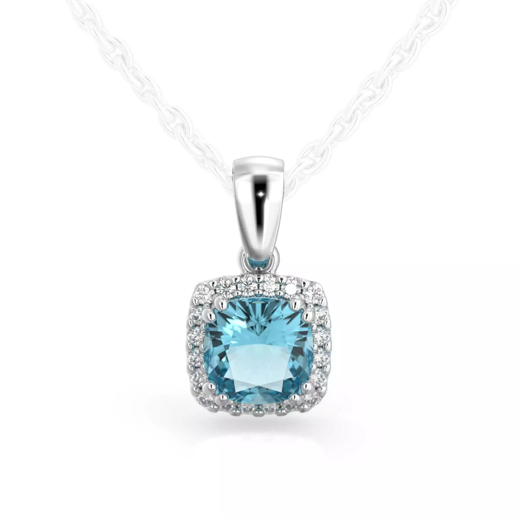 Festive Elsa timanttiriipus Akvamariinilla 14-592-090A-VK Näyttävä Festive Elsa riipus, jossa säihkyy kaunis 0,80 karaatin painoinen cushion-hionttu akvamariini, jota kehystää yhteensä 20kpl... Lue lisää