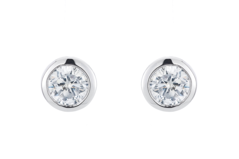 Hopeiset pyöreät korvakorut kirkkailla zirkoneilla C10402