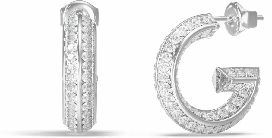 20mm korkeissa Guessin G-logoissa säihkyvät lukuisat kirkkaat kristallit.