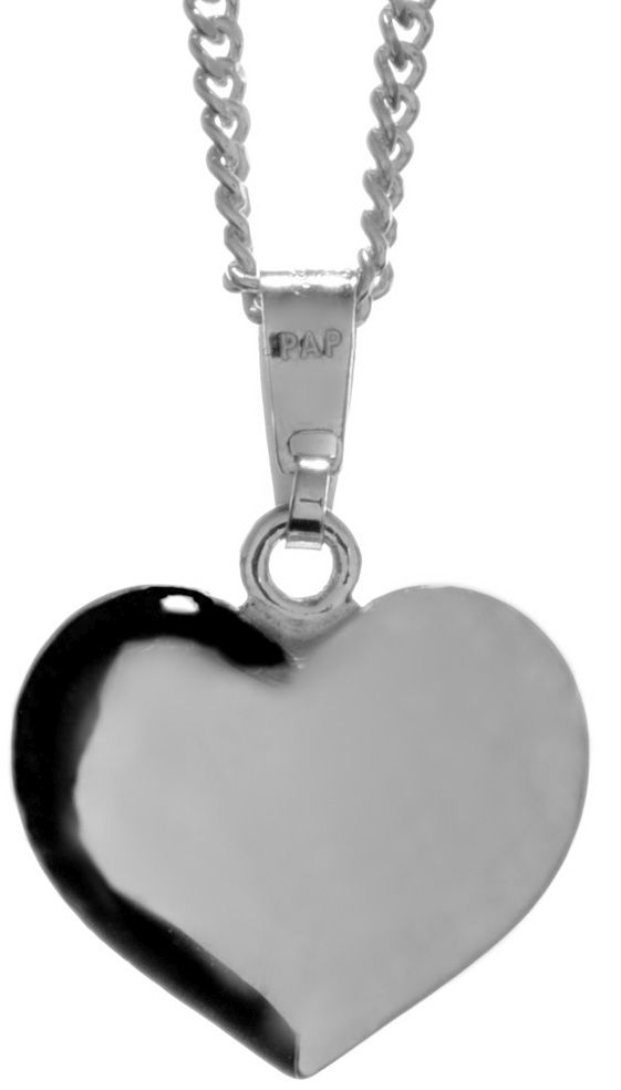 Hopeinen sydän riipus 12mm 45cm panssariketjulla.