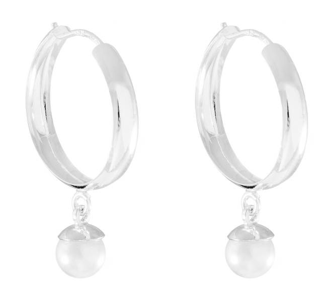 Rengamalliset korvakorut, jotka ovat valmistettu hopeasta. Korvakorut ovat puolipyöreät ja niiden leveys on n.3mm, sekä halkaisijaltaan n.15mm. Näihin on myös tuotu pienenä yksityiskohtana n.6mm kokoinen helmi roikkumaan korvarenkaasta.