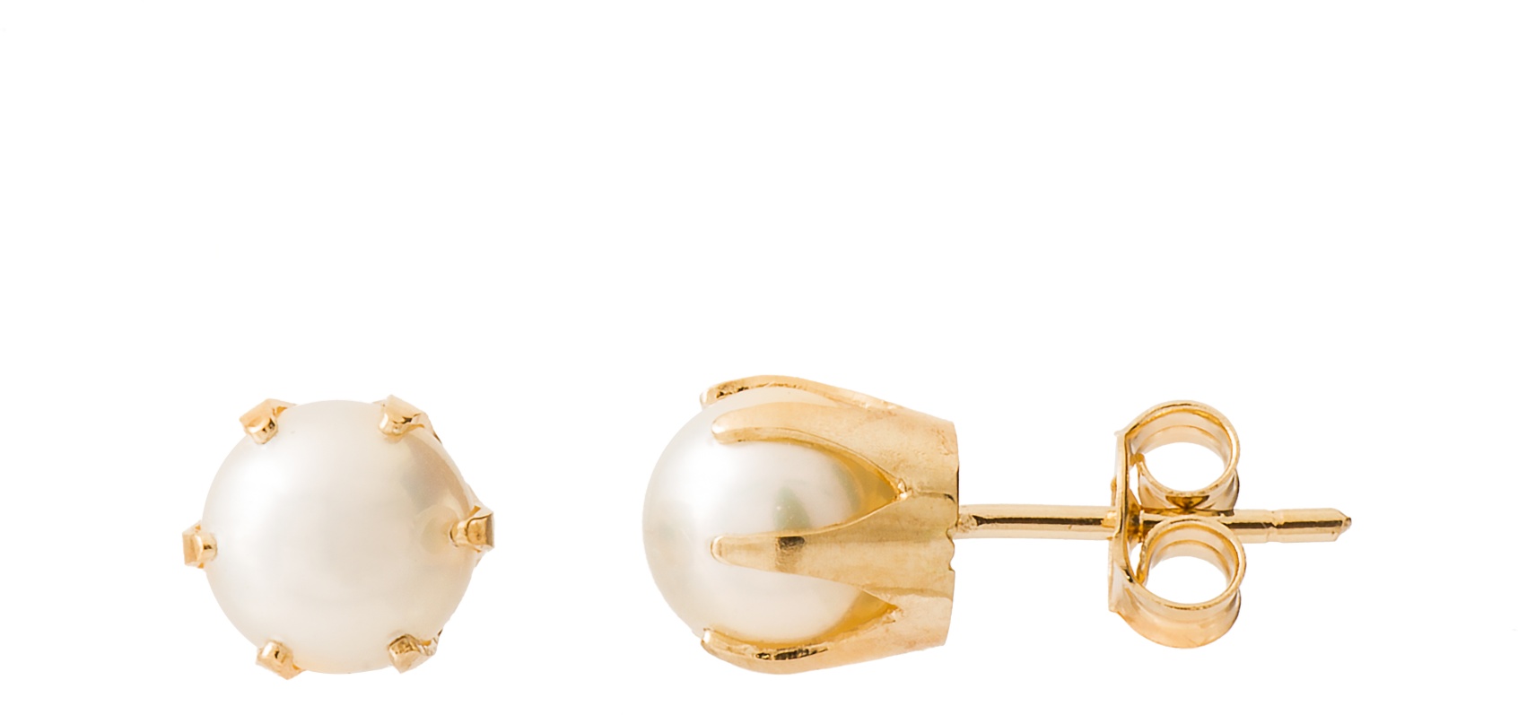 Kultainen tappimallin korvakorut, joissa aidot makeanveden helmet. Korvakorujen helmet ovat krappanaistutetut ja niiden koko on n.6mm.
