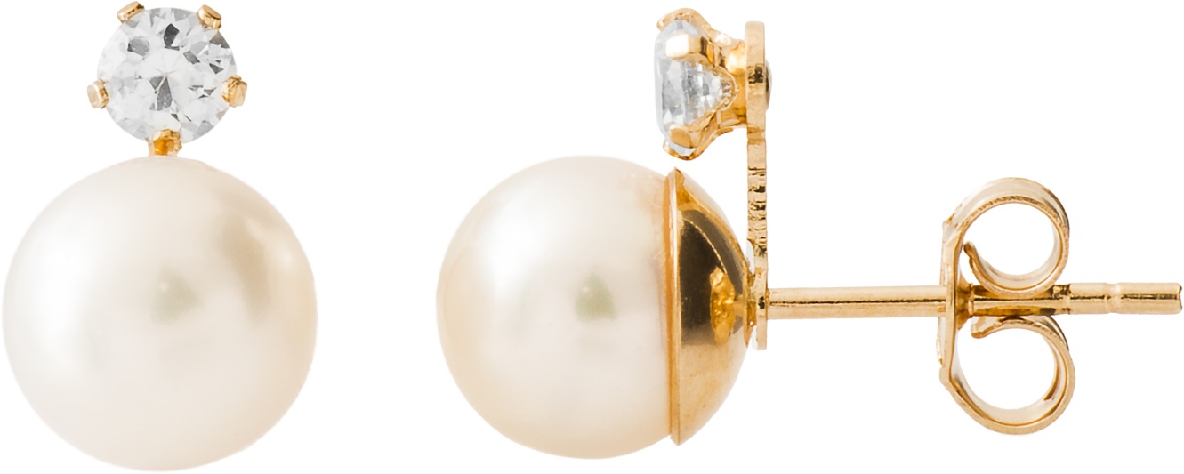 Kultaiset tappimallin korvakorut, joissa kaunis n.7mm helmi sekä pieni n.3mm zirkoni.