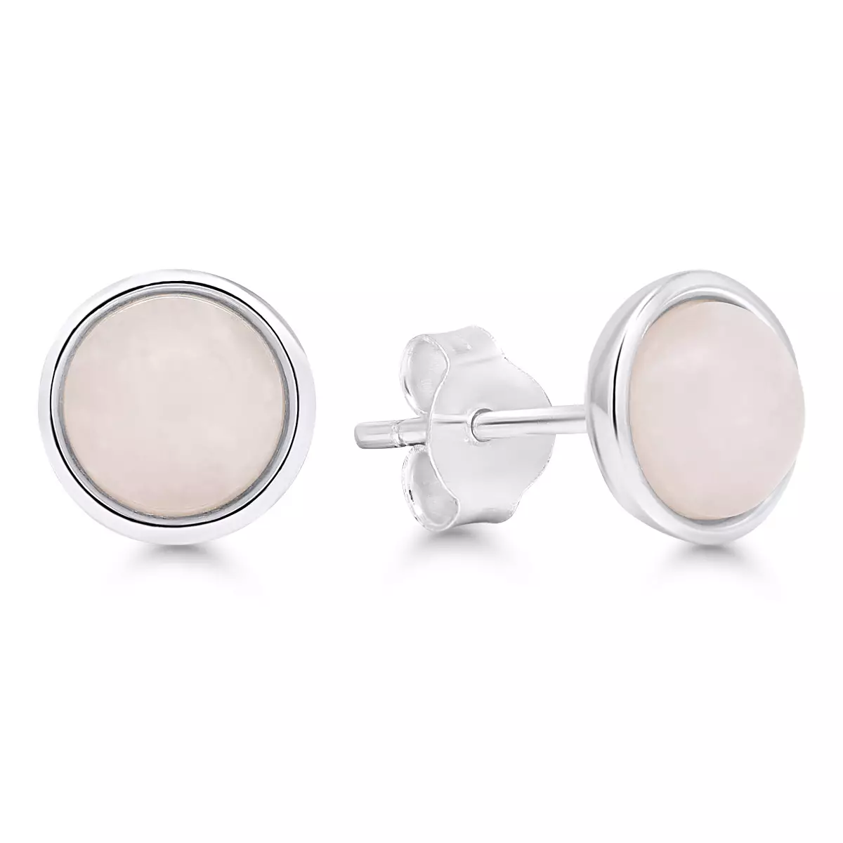 Hopeakorvakorut kuukivi 8,2mm Hopeakorvakorut ruusukvartsin sävyssä. Tappikiinnitys. Tuotteen ominaisuudet: 925/1000 hopeaa Ruusukvartsi Korun halkaisija 8,2 mm