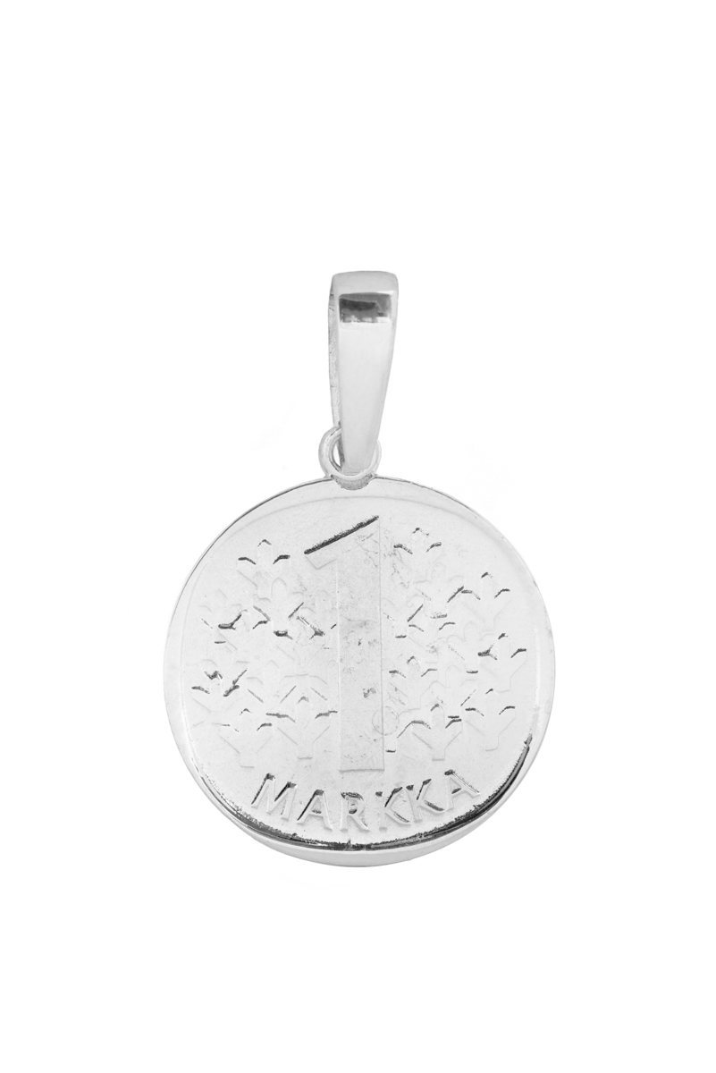 Markka on tehnyt paluun! Hopeasta valmistettu markkariipus. Mahdollista kaivertaa korun taakse.
