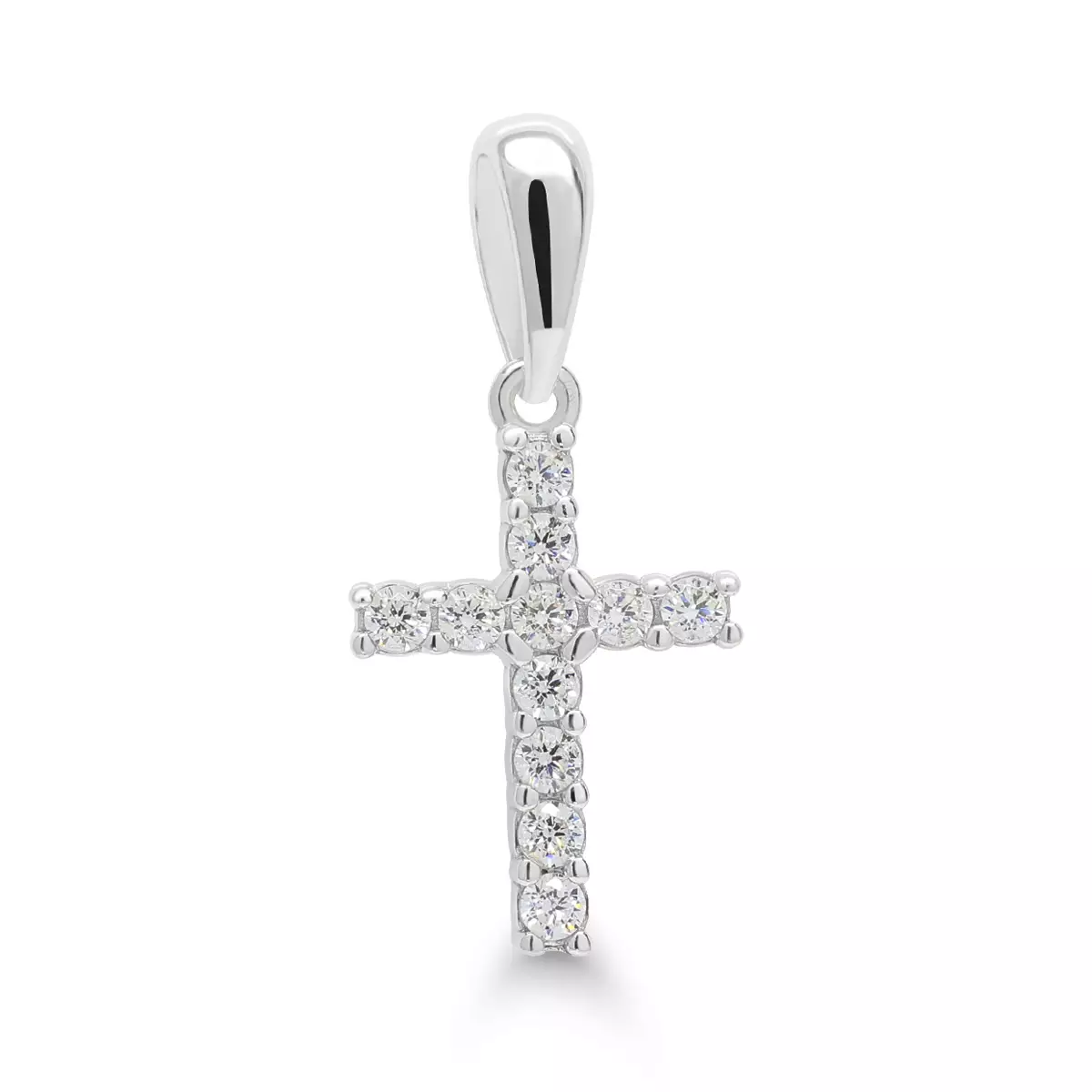 Hopearisti zirkonein 23x11mm Kaunis, kirkkailla zirkoneilla koristeltu hopearisti. Rodinoitu. Erinomainen vaihtoehto esim. rippiristiksi. Tuotteen ominaisuudet: Materiaali: Hopea (925/1000), rodinoitu... Lue lisää