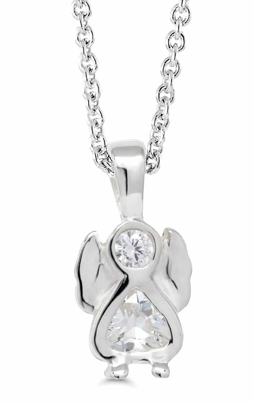 Hopeinen enkeli riipus zirkon kirkas