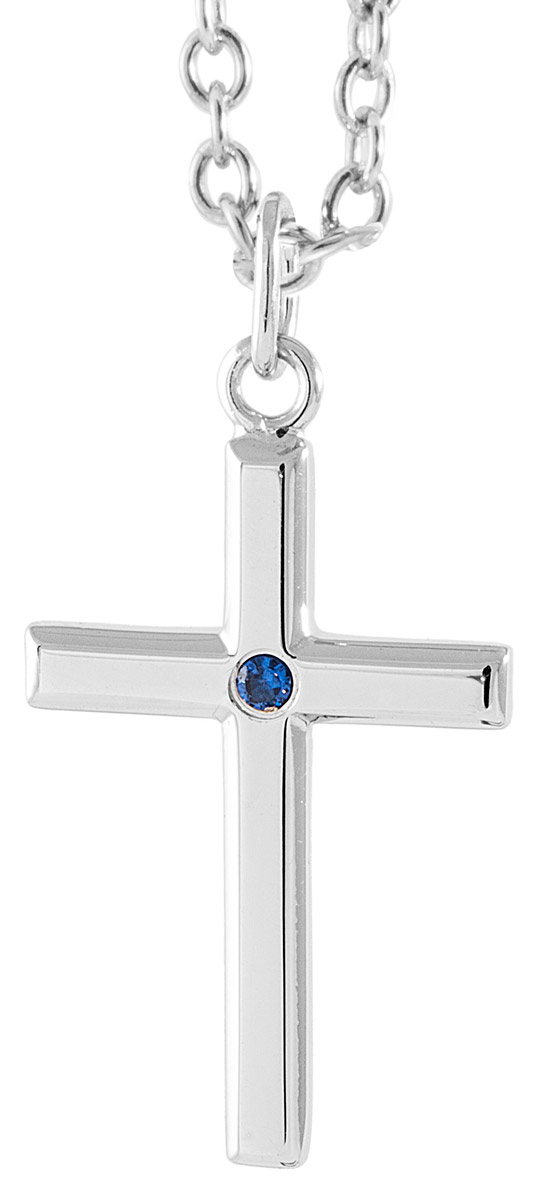 Hopeinen risti sinisellä zirkonilla ankkuriketjussa.