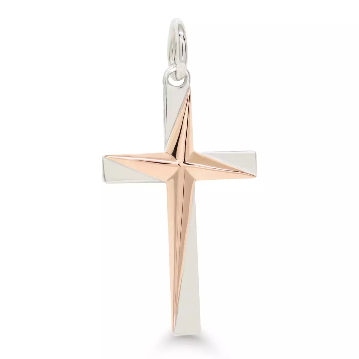 Hopeinen ristiriipus punakultauksella Tyylikäs hopeinen ristiriipus. Rodinoitu pinta punakullatulla yksityiskohdalla. Ei sisällä ketjua. Tuotteen ominaisuudet: Materiaali: 925/1000 hopea Korkeus 30... Lue lisää