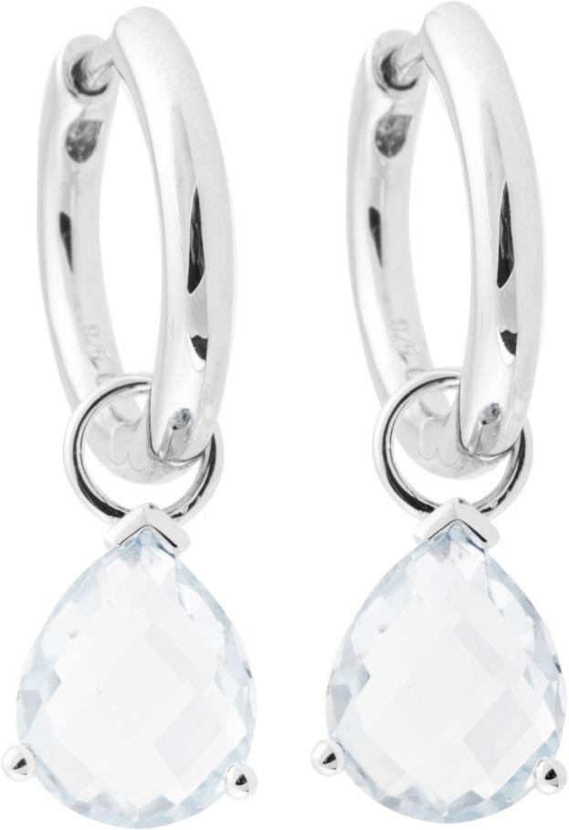 Hopeiset korvarenkaat, joissa säihkyy pisaran muotoiset kirkkaat zirkonit, joiden koko on 7,5mm x 10,5mm.