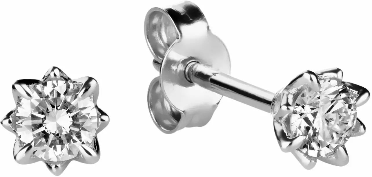 - Kivinä kirkkaat zirkonit joiden koko vastaa 2 x 0,10ct timantteja.