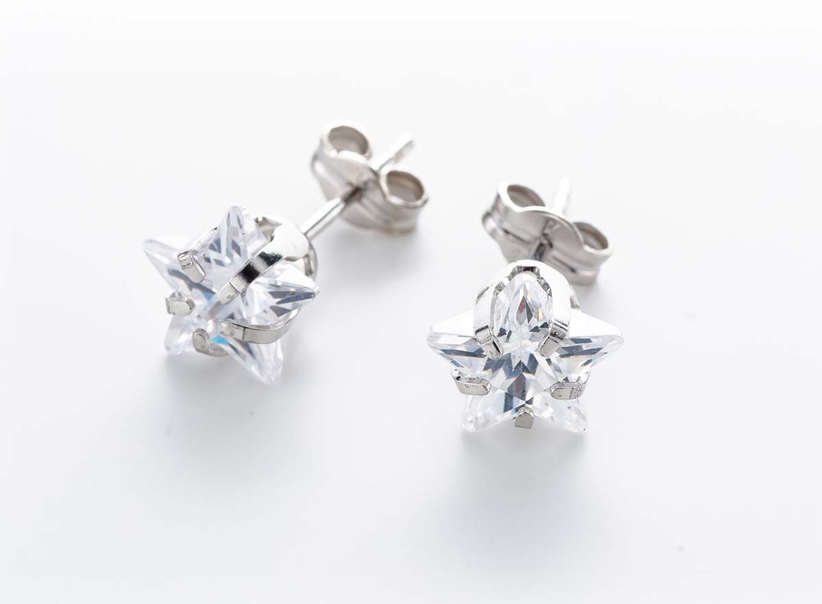 Näyttävät hopeiset korvakorut tähden muotoisilla korukivillä