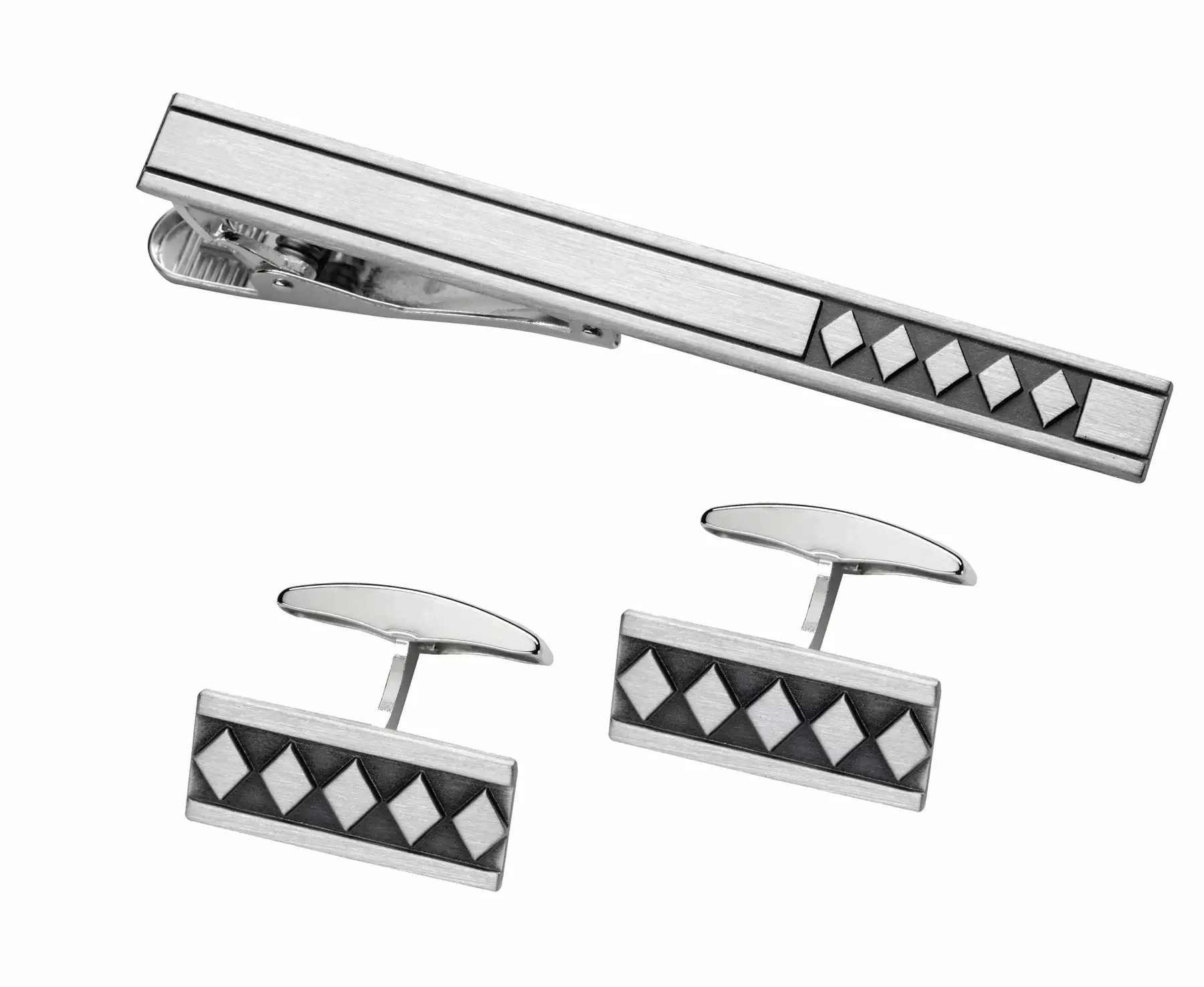 Tämä solmioneulan ja kalvosinnappien yhdistelmä sopii erinomaisesti lahjaksi esimerkiksi häihin, valmistujaisiin, merkkipäivään tai yrityslahjaksi. Klassinen hopeinen korukokonaisuus on tyylikäs valinta miehelle, joka arvostaa laatua ja ajatonta designia.
