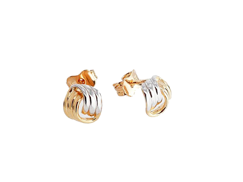 Näyttävät kaksiväriset kultaiset solmukorvakorut. Nämä ja muut suosikkimallit satojen parien valikoimastamme.