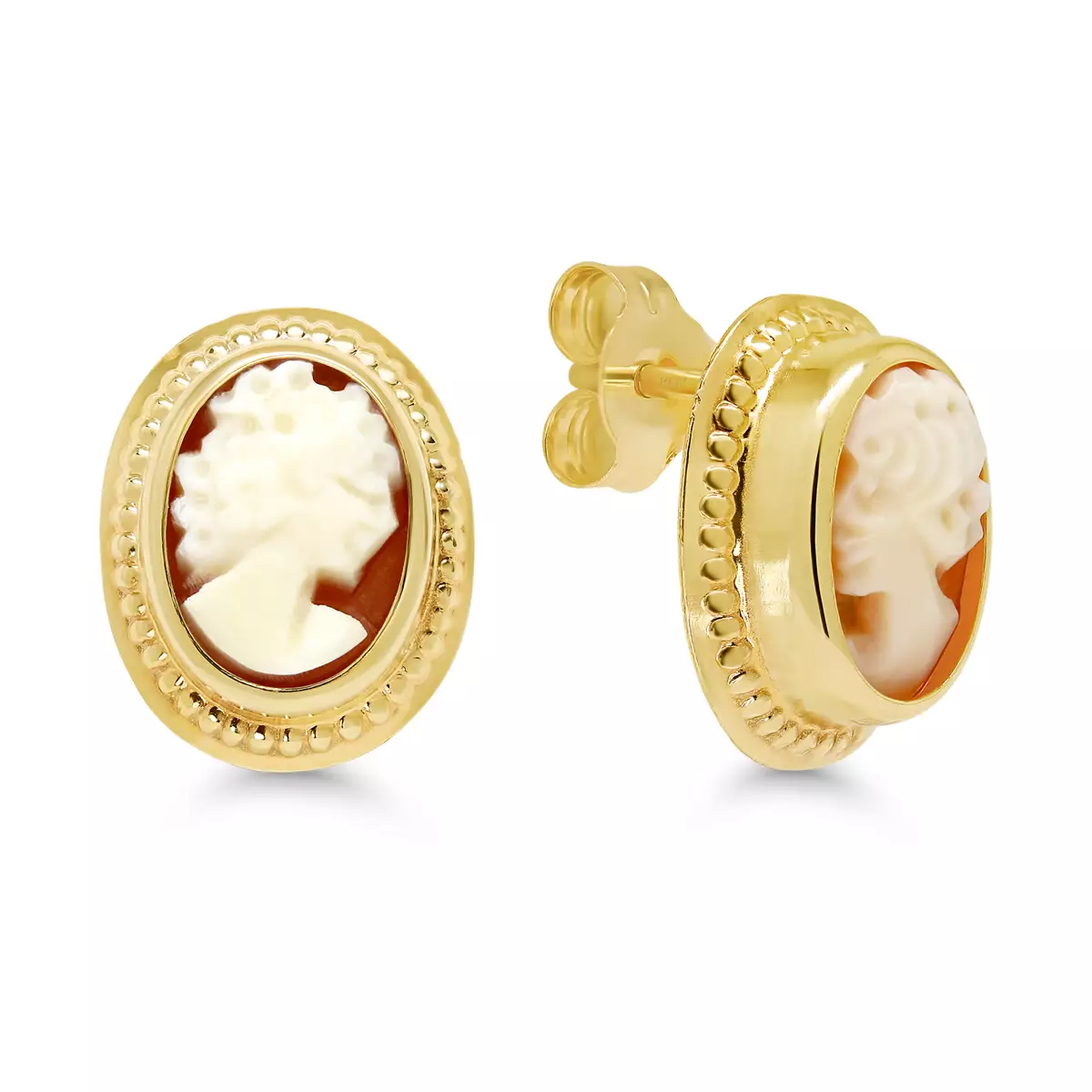 Kauniit keltakultaiset Kamee-korvakorut, tappikiinnityksellä.