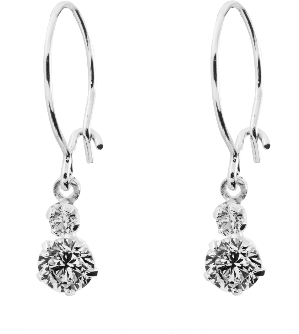 Koukkumalliset hopeiset korvakorut, joissa kaksi zirkoni kiveä