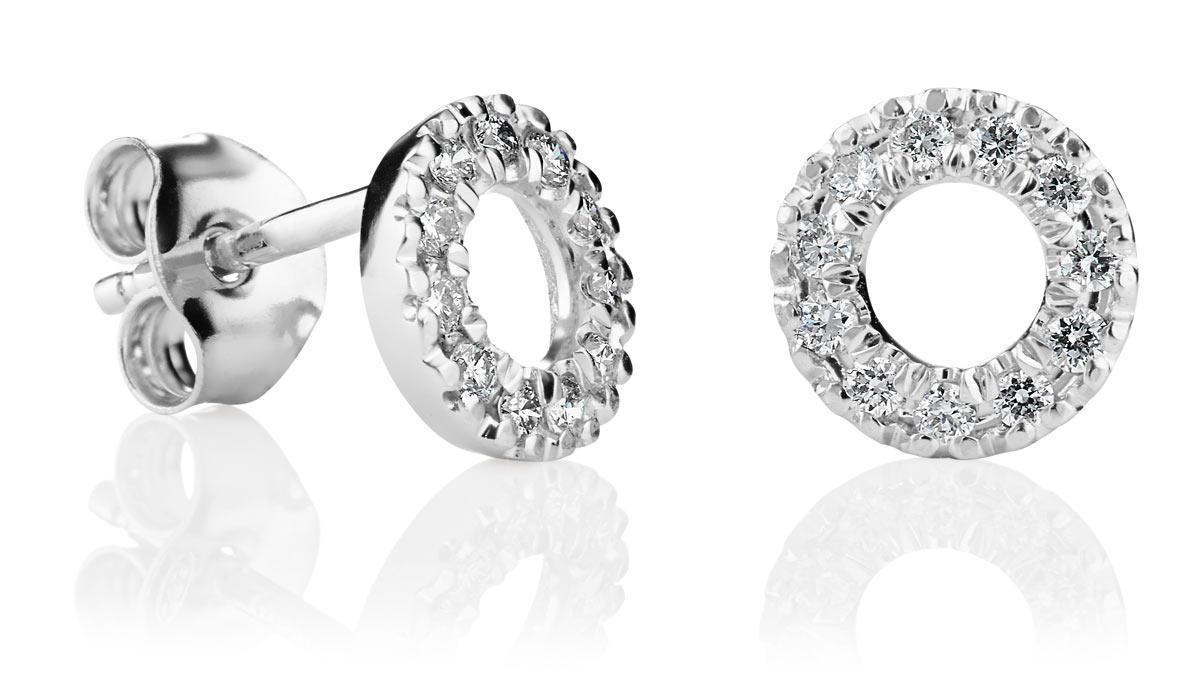 Korvakorut on valmistettu 14 karaatin valkokullasta ja niihin on istutettu yhteispainoltaan 0,22 karaatin timantit.