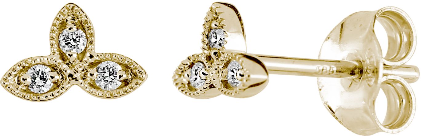 Ihastuttavan herkät Kohinoor Swan sarjan keltakultaiset timanttikorvakorut, joissa säihkyvien kuuden timantin istutukset on reunustettu krysanteenireunuksella.