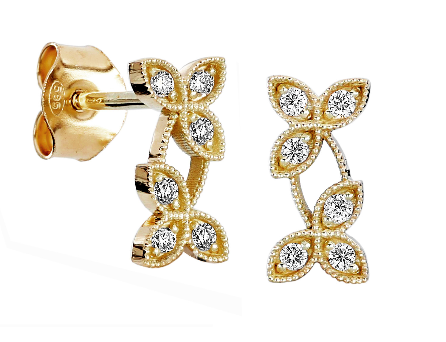 Korvakorut on valmistettu 14 karaatin keltakullasta ja timantteina niissä säihkyy yhteispainoltaan 0,12 karaatin kivet