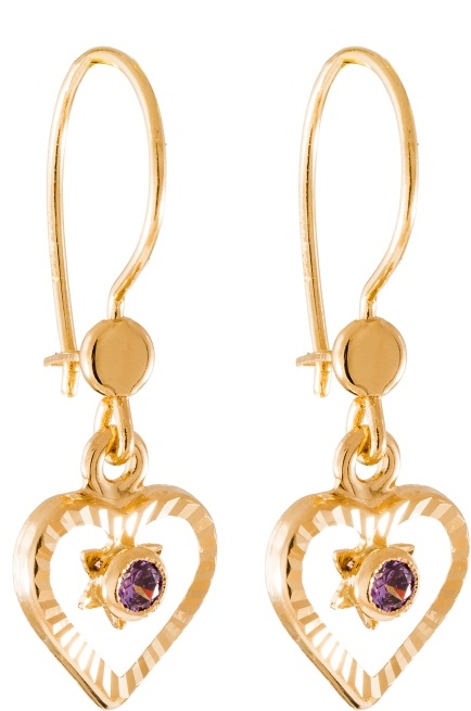 Kultaiset sydän korvakorut pinkeillä kivillä 8mm