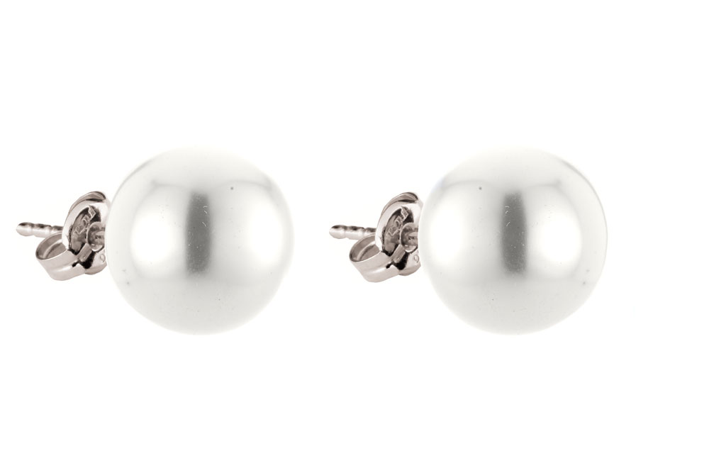 Korvakoruja koristavat kauniit helmiäispinnoitteiset pallot.