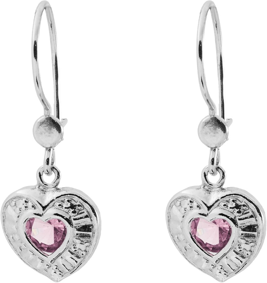 Sydän koukku korvakorut pinkillä kivellä