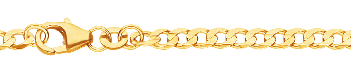 14 karaatin keltakullasta valmistettu panssariketju, jonka lenkkien keskiosaan on lisätty normaalista panssariketjusta poiketen kevyt ura.