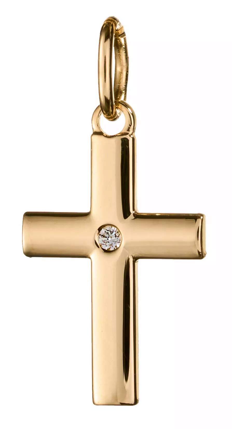 Siron kokoinen kultainen ristiriipus, jonka päätähtenä säihkyy 0,01 karaatin timantti. Materiaalina ristissä on käytetty 14 karaatin keltakultaa.