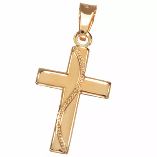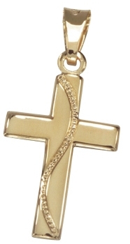 Kaunis kultainen risti, jonka pinnassa mutkittelee elämänpolku. Risti on valmistettu 14 karaatin keltakullasta ja sen korkeus on 20 mm, leveyttä ristillä on 11mm