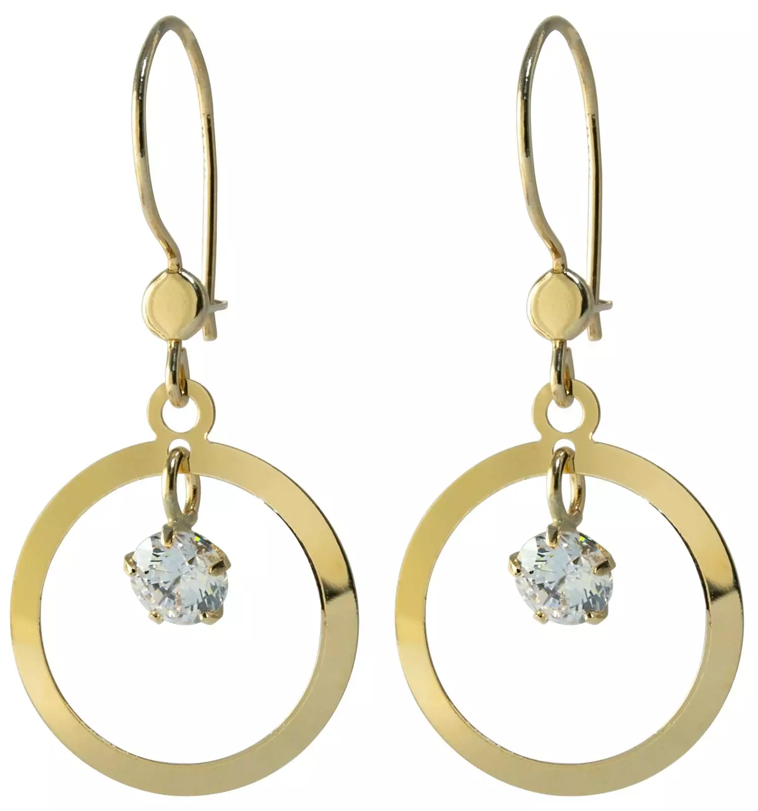 Nämä elegantit korvakorut on valmistettu aidosta 14 karaatin keltakullasta, joka huokuu klassista arvokkuutta ja kestävää kauneutta. Korvakorujen muotoilu yhdistää yksinkertaisen modernin tyylin ja ajattoman naisellisuuden: pyöreät, 14 mm halkaisijaltaan olevat kultarenkaat luovat kevyen ja ilmavan vaikutelman, kun taas keskelle ripustettu kirkas zirkoni lisää koruihin näyttävää säihkettä. Kivet on hiottu huolellisesti, jotta ne heijastavat valoa kauniisti jokaisessa liikkeessä.