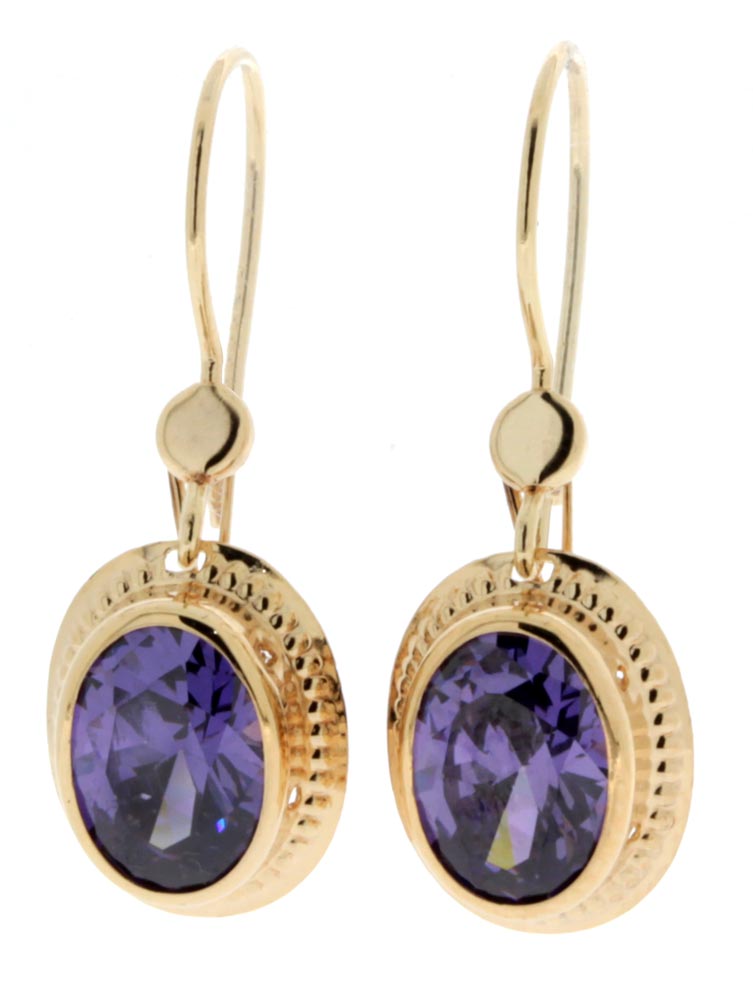 Kultaiset cameetyyliset korvikset lilalla korukivellä