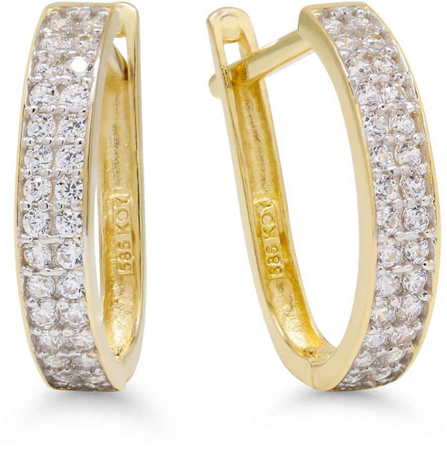 Kultaiset Korvarenkaat Zirkoneilla 6-E43371Z Koko: 13x10mm Leveys: 2,5mm Tappikiinnitys saranalla