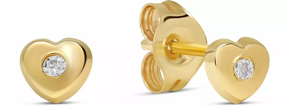 Nämä sirot 14 karaatin keltakultaiset sydänkorvakorut ovat pieni, mutta kauniisti erottuva yksityiskohta päivittäiseen tyyliin. Korvakorujen 4 x 3,5 mm kokoinen sydänmuoto tekee niistä herkän ja kevyen, mutta samalla riittävän näyttävän korostamaan kasvoja pehmeästi. Sydämen keskelle istutettu kirkas zirkoni tuo korvakoruihin valoa ja pienen säihkeen, joka näkyy erityisesti liikkeessä.