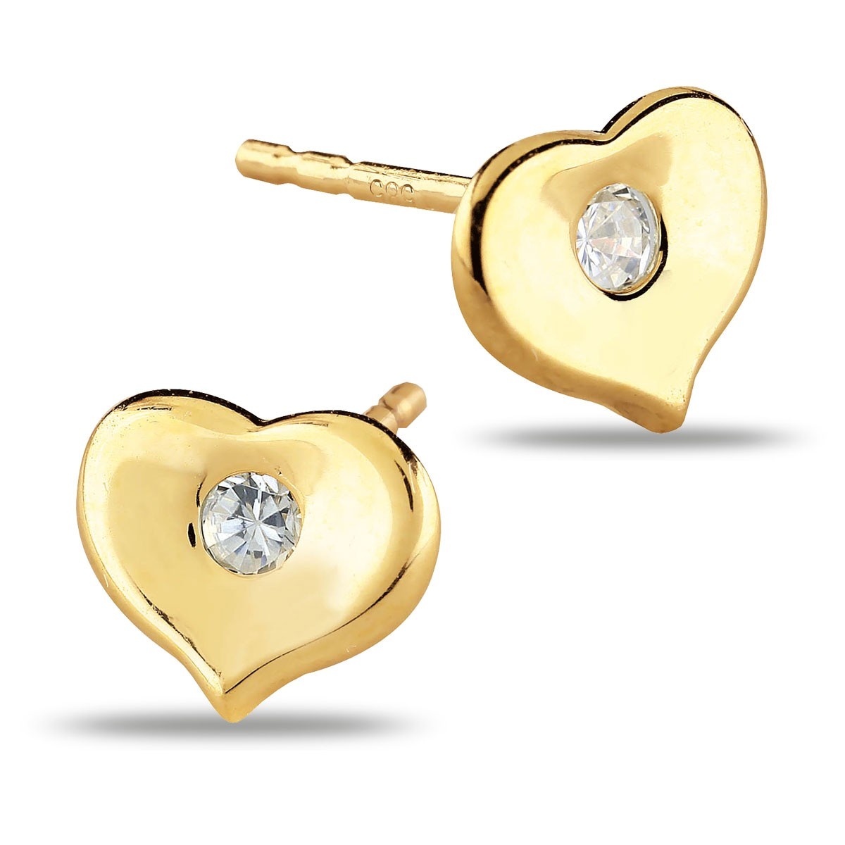 Keltakultaiset sydänkorvakorut zirkoneilla