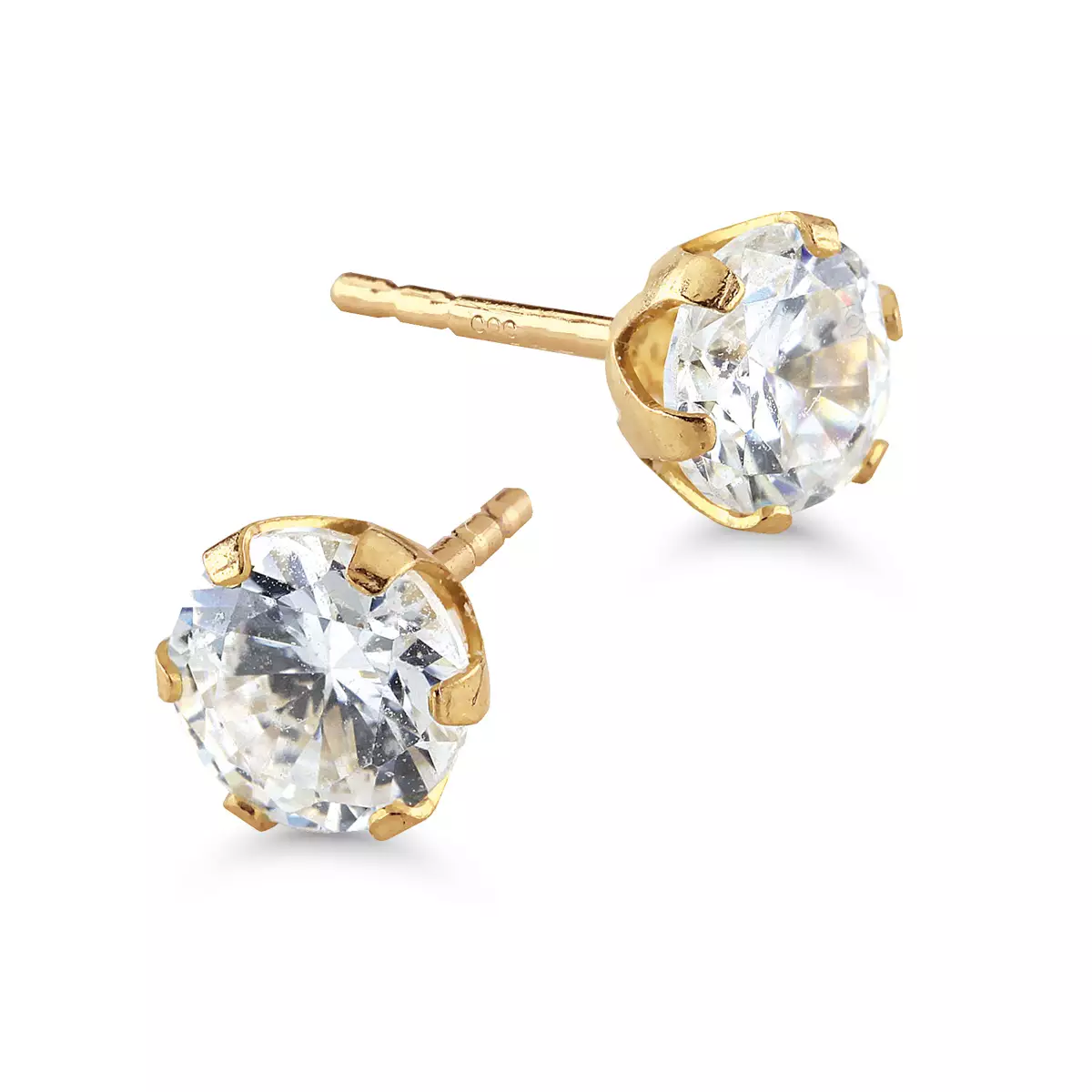 Kauniit keltakullasta valmistetut tappikorvakorut. Kirkkaat zirkonit.