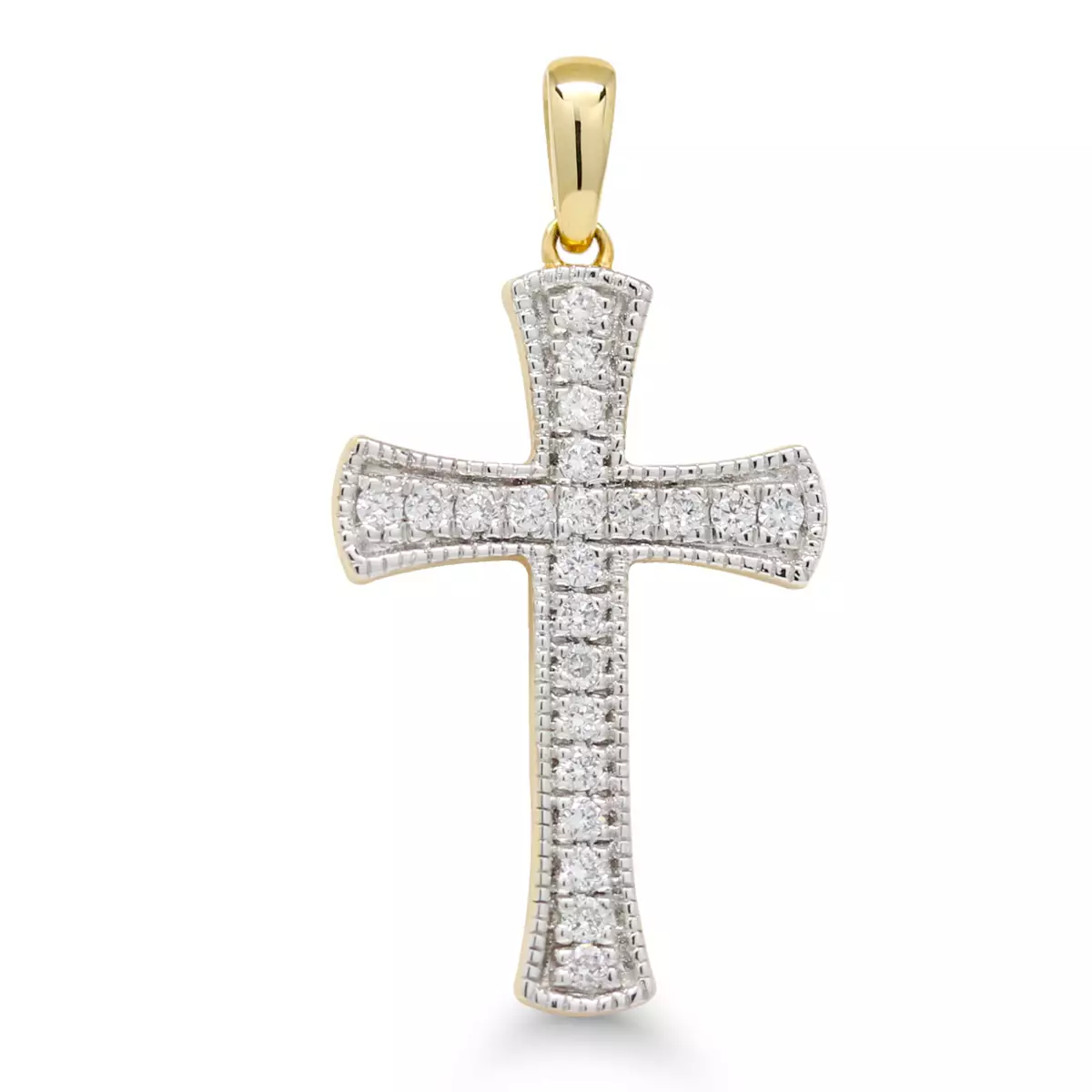 Kultainen risti timanteilla. Timanttien kokonaismäärä 0,14 ct.