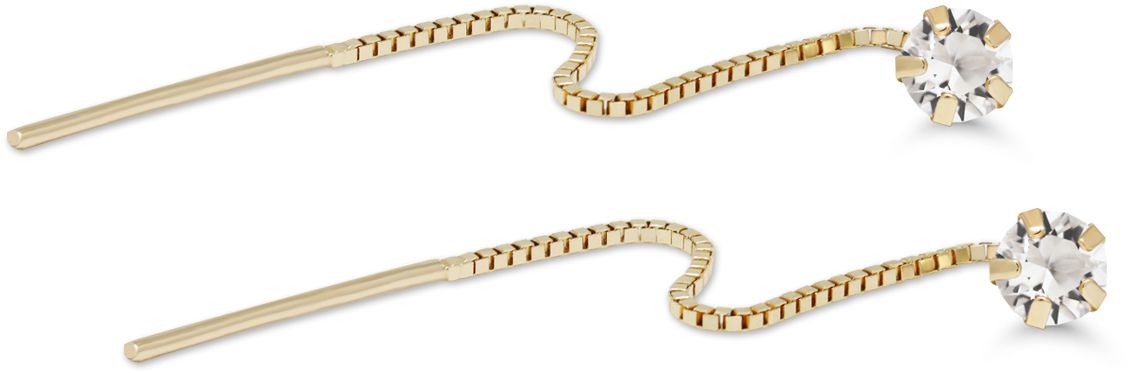 Kultaiset läpivedettävät korvakorut Tuotteen ominaisuudet: Materiaali: 14k keltakulta (585/1000) Kiven halkaisija: 3mm Ketjun pituus. n. 35mm