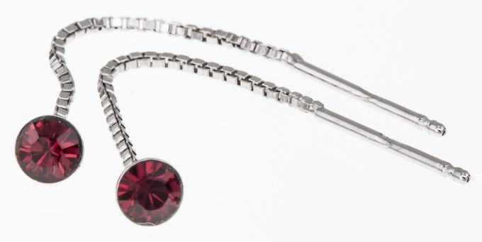 Läpivedettävät zirkonikorvakorut RHK345 - Materiaali: Sterling-hopea 925/1000 - Koko: 4mm - Punaiset zirkonit - Läpivedettävät