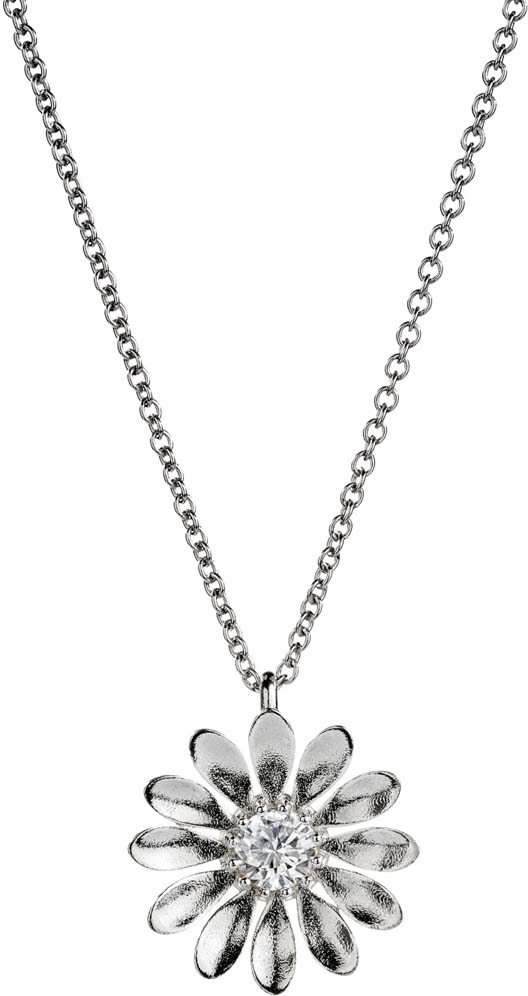 Korusarjan kukkaset on valmistettu hopeasta ja niissä säihkyy eri väriset zirkonit.
