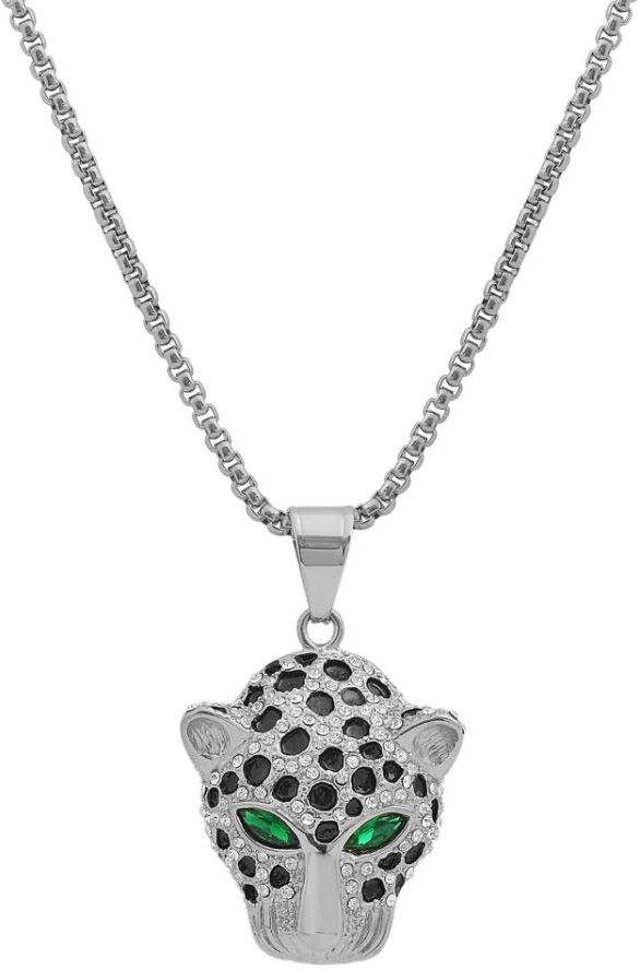 Leopardi kaula rodinoitu Akzentin ruostumattomasta teräksestä valmistettu ankkuriketju on 61 cm pitkä. Iso leopardin pään muotoinen riipus on kiinnitetty ketjuun. Riipus on koristeltu mustilla... Lue lisää