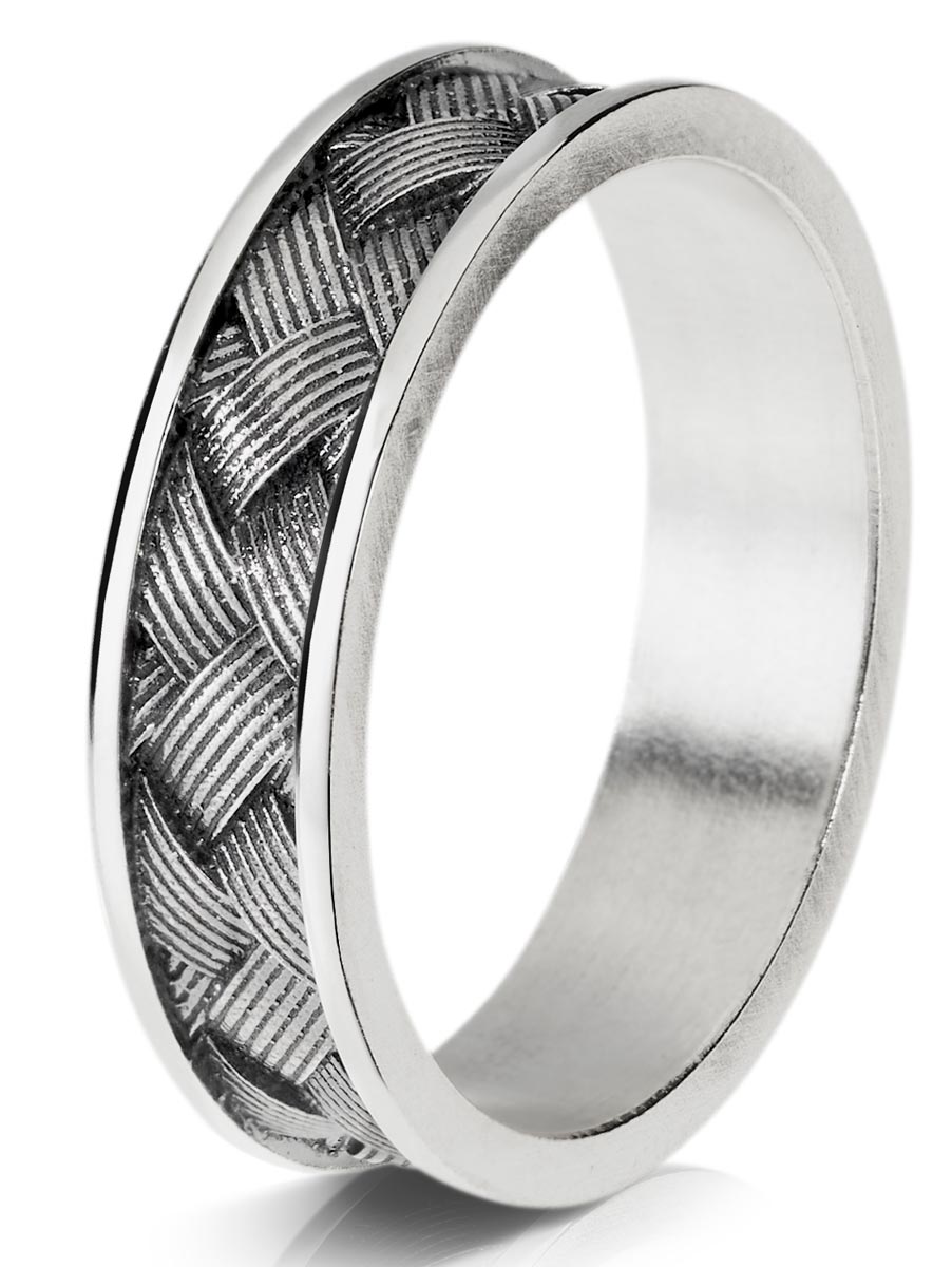 Tämä kaunis pärekuvio on upotettu hopeisen sormuksen pintaan Saurumin tehtaalla Kuopiossa.