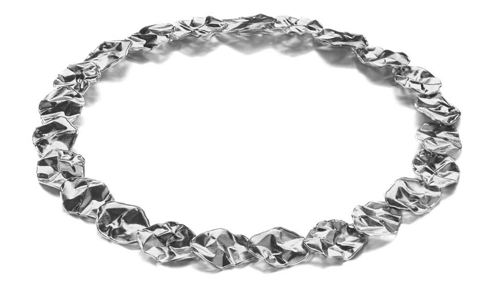 Ennalta-arvaamaton ja jokseenkin hallitsematon lopputulos koruissa on suunnittelijan mieleen. Vuoksi korussa pinta on hyvin sattumanvarainen ja luonnollinen. Lumoava vuoksi tarjoaa suurremmoisia, sykähdyttäviä koruja juhlaan kuin harkitumpia arkikäyttöönkin.