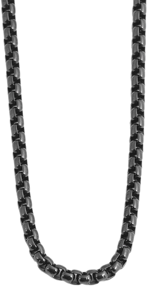 Musta, ruostumattomasta teräksestä valmistettu papuketju. Ketjun pituus on messevät 60 cm ja sen paksuus on 3 mm. Ketju toimitetaan korurasiassa, jossa ketju on helppo antaa esimerkiksi lahjaksi.