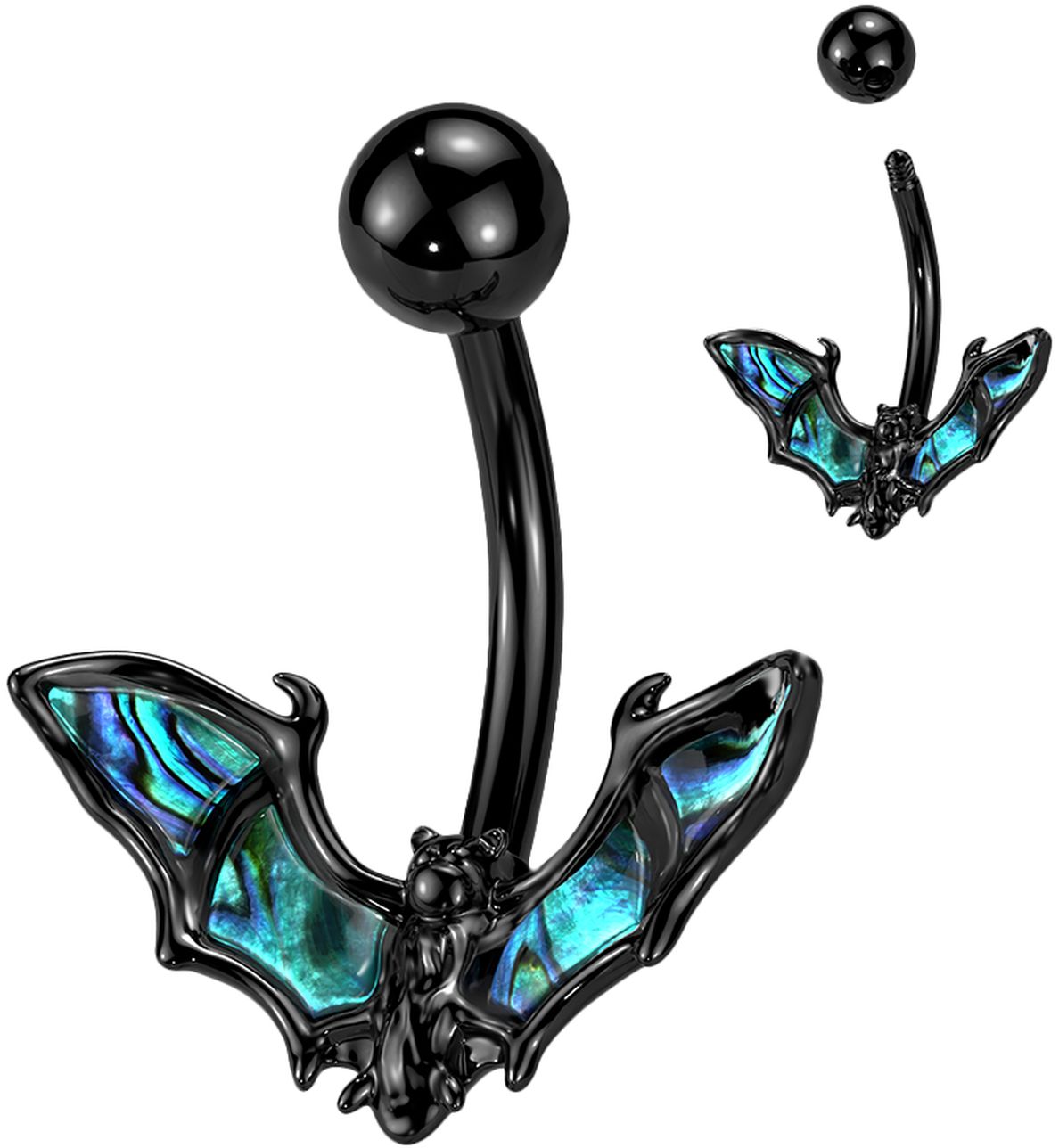 Napakoru LEPAKKO MUSTA N029-B Tuotteen ominaisuudet: Materiaali: Kirurginteräs Paksuus 1,6mm Tapin pituus 10mm Pallon halkaisija: 5mm