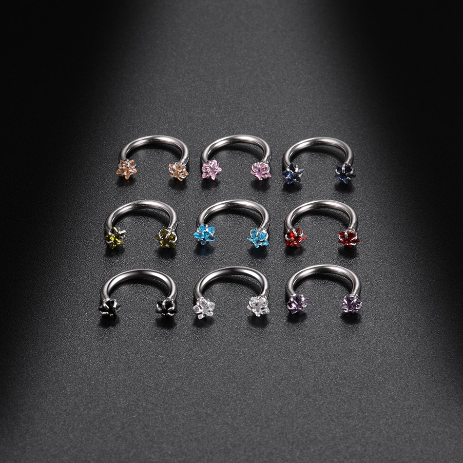 Nenäkoru Hevosenkenkä Kirkas & Musta & Pinkki Nenäkoru irroitettavilla päillä. Pyöreän- tai tähdenmuotoinen korukivi. Materiaali: Ruostumaton teräs Leveys: 11 mm